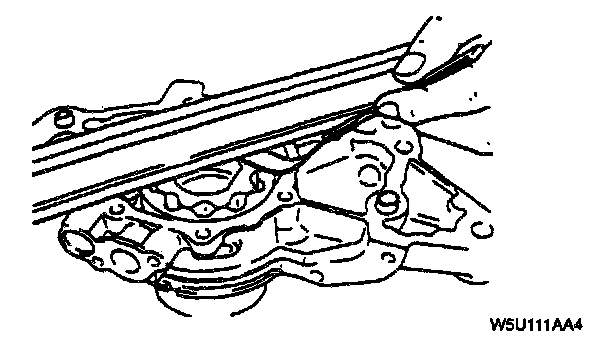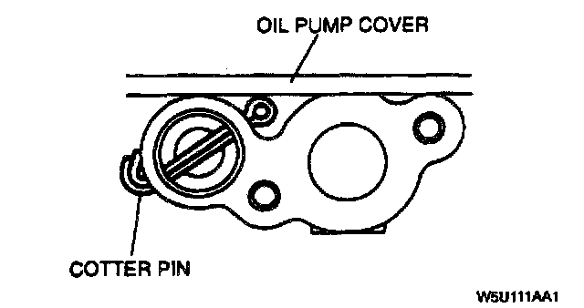 ^ Bend the cotter pin so that its tip does not project from the oil pump cover mounting surface.