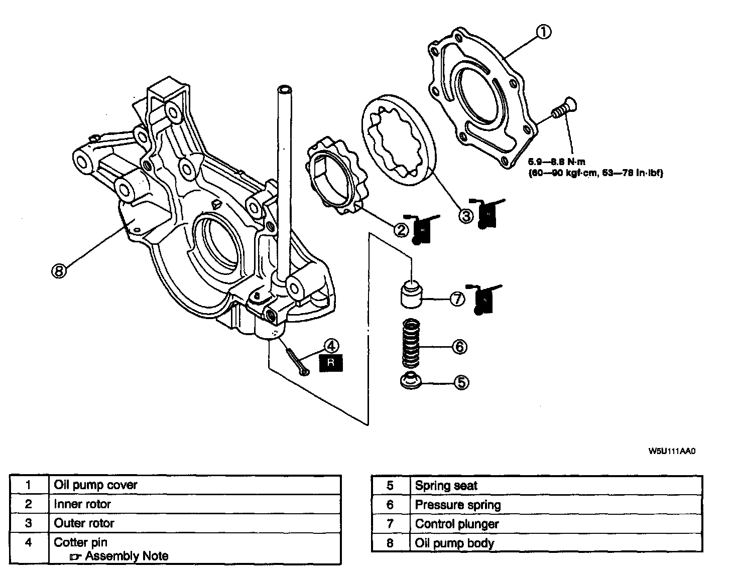 OIL PUMP DISASSEMBLY / ASSEMBLYWarning: Continuous exposure with USED engine oil has caused skin cancer In laboratory mice. Protect your skin by washing with soap and water Immediately after this work.