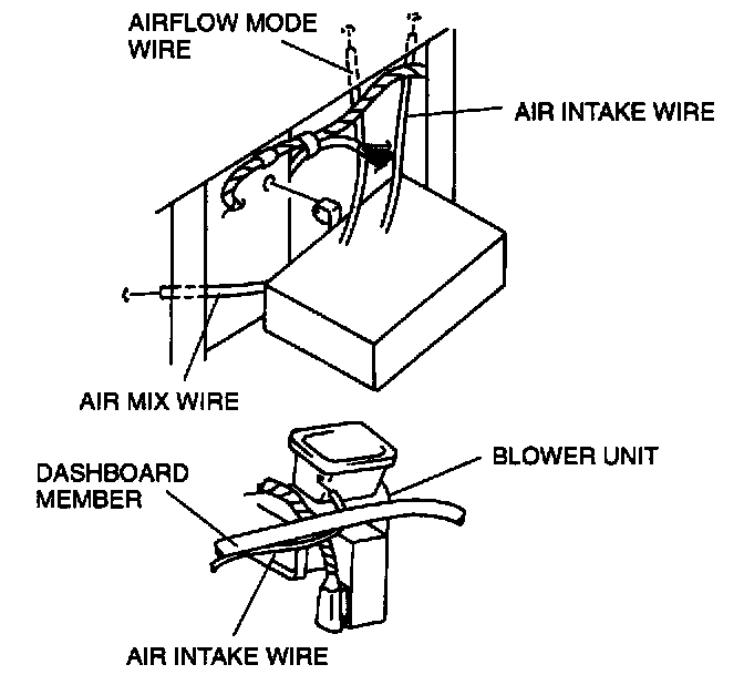 3. Disconnect the air mix wire and airflow mode wire from the heater unit.