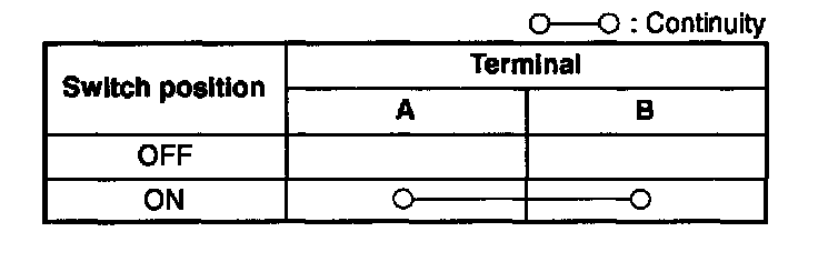 2. Inspect for continuity between the A/C switch terminals by using an ohmmeter.