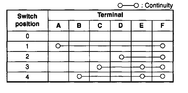 2. Inspect for continuity between the fan switch terminals by using an ohmmeter.