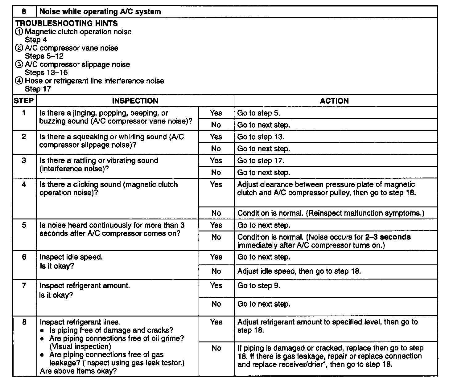 No. 8 Noise While Operating A/C System.