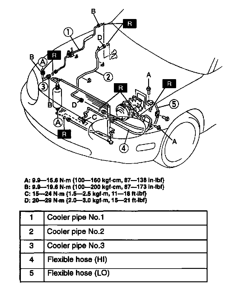 2. When installing a new cooler hose or pipe add DENSO OIL9 compressor oil into the refrigeration cycle.
