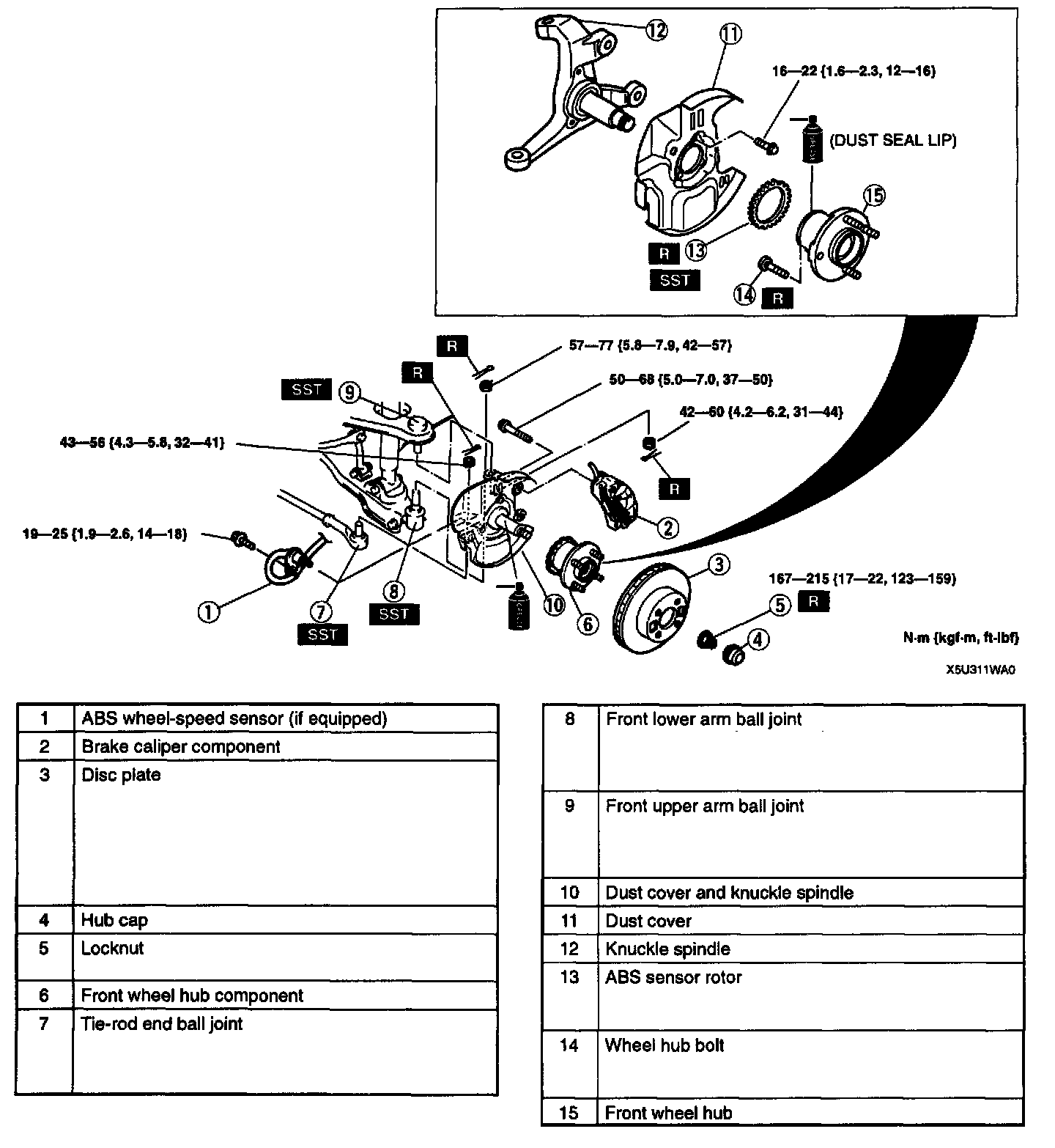 WHEEL HUB, STEERING KNUCKLE REMOVAL/INSTALLATIONCaution: