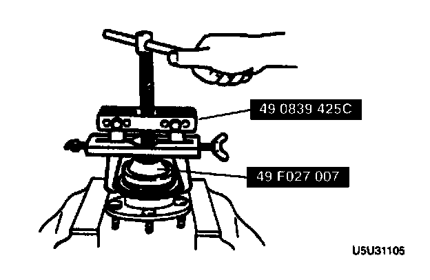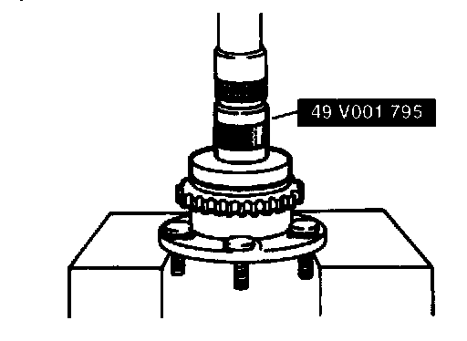 - Secure the front wheel hub in a vise and remove the sensor rotor by using the SSTs.
