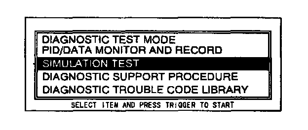 4. Move the cursor to SIMULATION TEST. Press the trigger key to enter this selection.