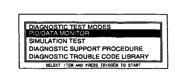 4. Move the cursor to PID/DATA MONITOR AND RECORD. Press the trigger key to enter this selection.
