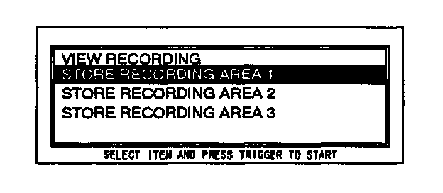 9. Move the cursor to STORE RECORDING IN AREA 1. Press the trigger key.