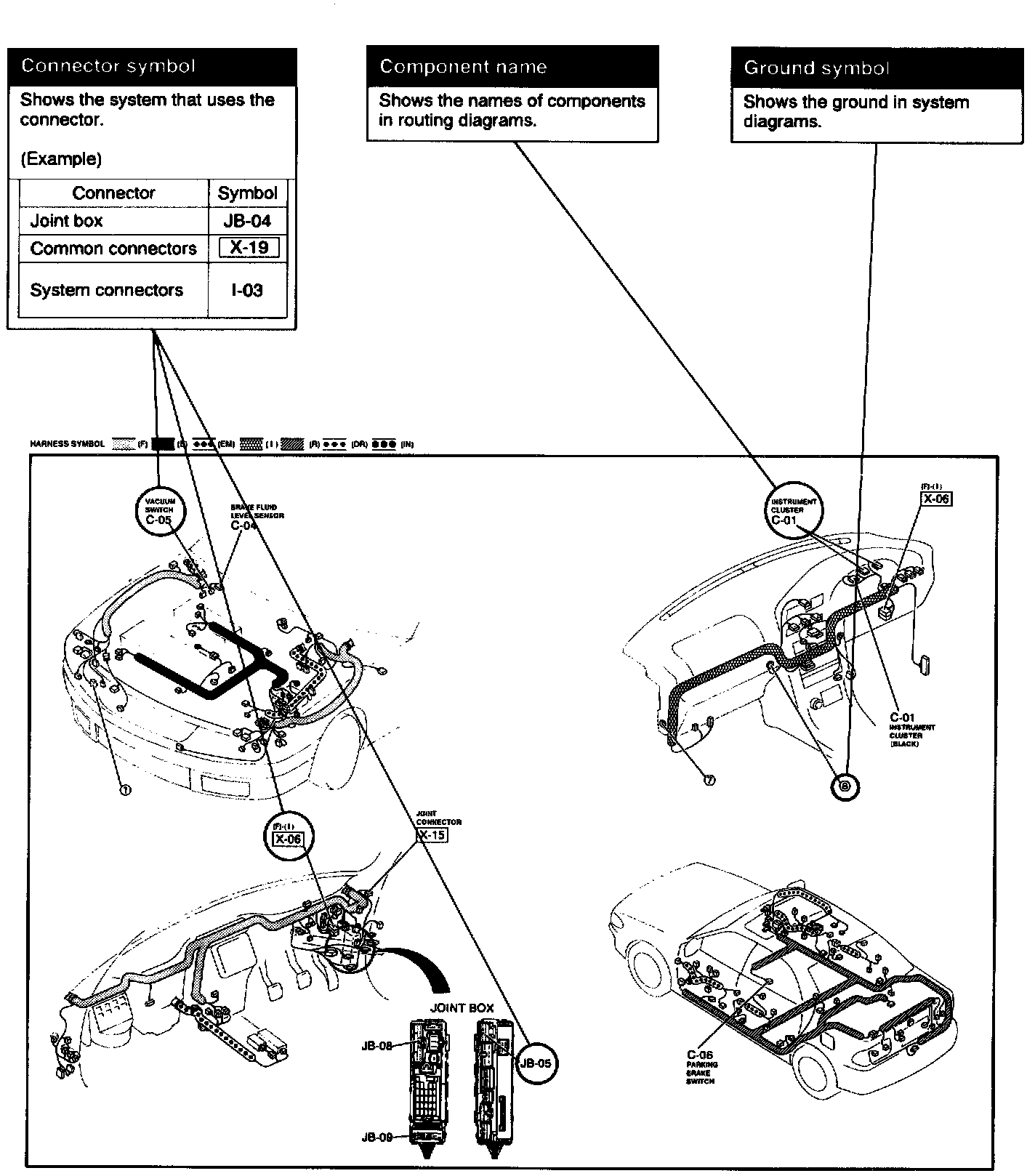 The routing diagram shows where electrical components are on the system circuit diagram by call out line and connector symbols.