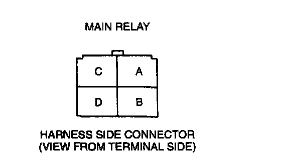 - Power circuit (No.4 cylinder fuel injector connector terminal A and main relay connector terminal D through common connector)