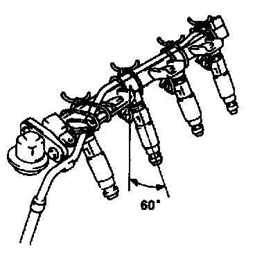 9. Tilt the fuel injectors approx. 60° and verify that fuel leaks from the fuel injector nozzles is within specification.