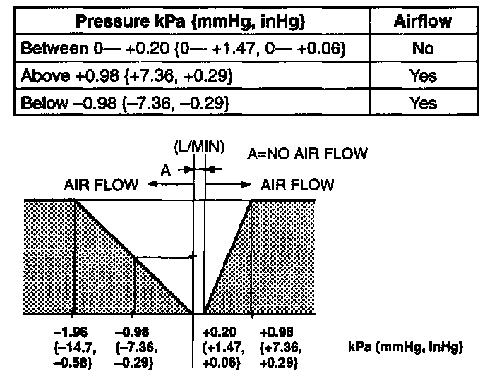 3. Apply pressure to port A and inspect airflow under the following conditions.
