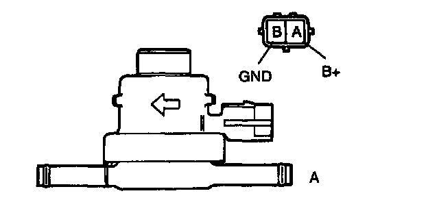 4. Apply battery positive voltage to the valve connector terminal A and apply pressure to port A, and verify that air flows smoothly.
