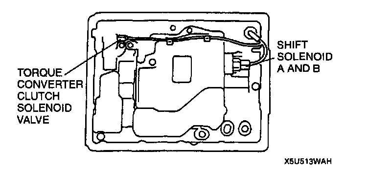 7. Disconnect the shift solenoid A, B, and torque converter clutch solenoid valve connector.
