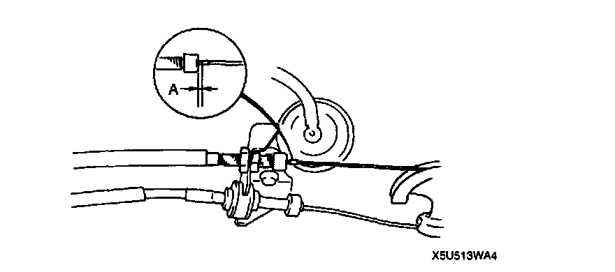 THROTTLE CABLE INSPECTION1. Verify that the throttle cable is adjusted within dimension A as shown in the figure below when the throttle cable is in closed throttle position.