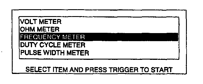 10. Move the cursor to FREQUENCY METER. Press the trigger key to enter this selection.