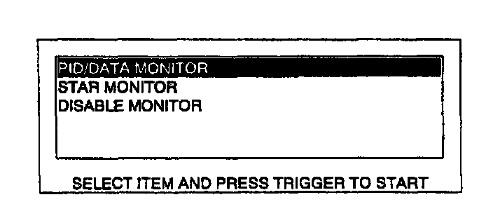 12. Move the cursor to PID/DATA MONITOR. Press trigger key to enter this selection.