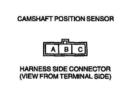 - Camshaft position sensor connector terminal B and PCM connector terminal 2H to ground.