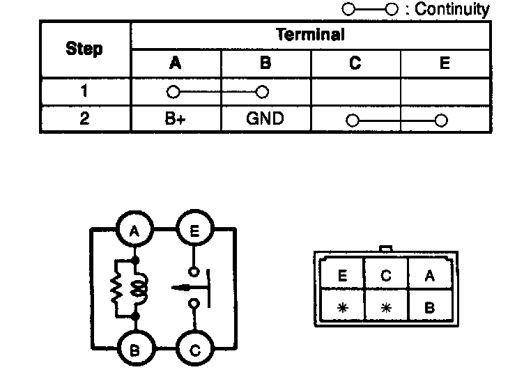 3. Inspect for continuity between the fuel pump relay terminals by using an ohmmeter.