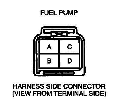 - Fuel pump relay connector terminal C and fuel pump connector terminal B to ground
