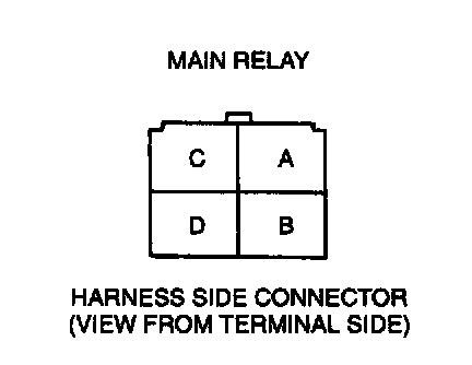 - Power circuit (Fuel pump relay connector terminal A or E and main relay connector terminal D)