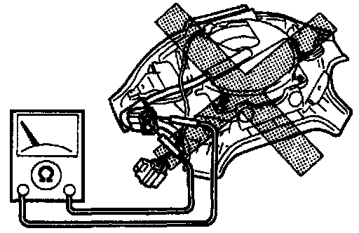 Inspecting the air bag module by using an ohmmeter can deploy the air bag module, which may cause serious injury. Do not use an ohmmeter to inspect the air bag module. Always use the on-board diagnostic function to diagnose the air bag for malfunctions.