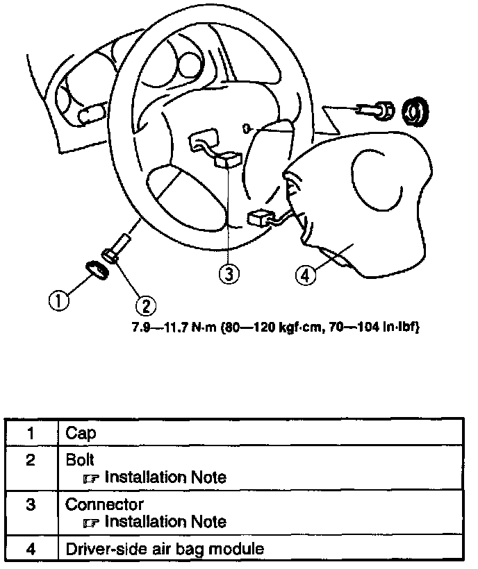 WARNING: Handling the air bag module improperly can accidentally deploy the air bag module, which may seriously injure you. Read AIR BAG SYSTEM SERVICE PRECAUTIONS before handling the air bag module.1. Turn the ignition switch to LOCK.