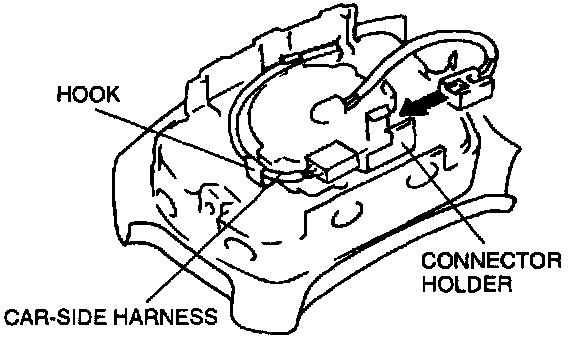 Connector Installation Note: Install the connector and secure the car-side harness onto the hook as shown.