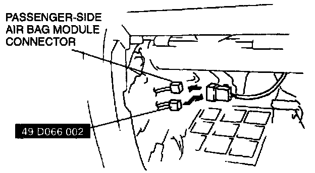 2. Disconnect the passenger-side air bag module connector.