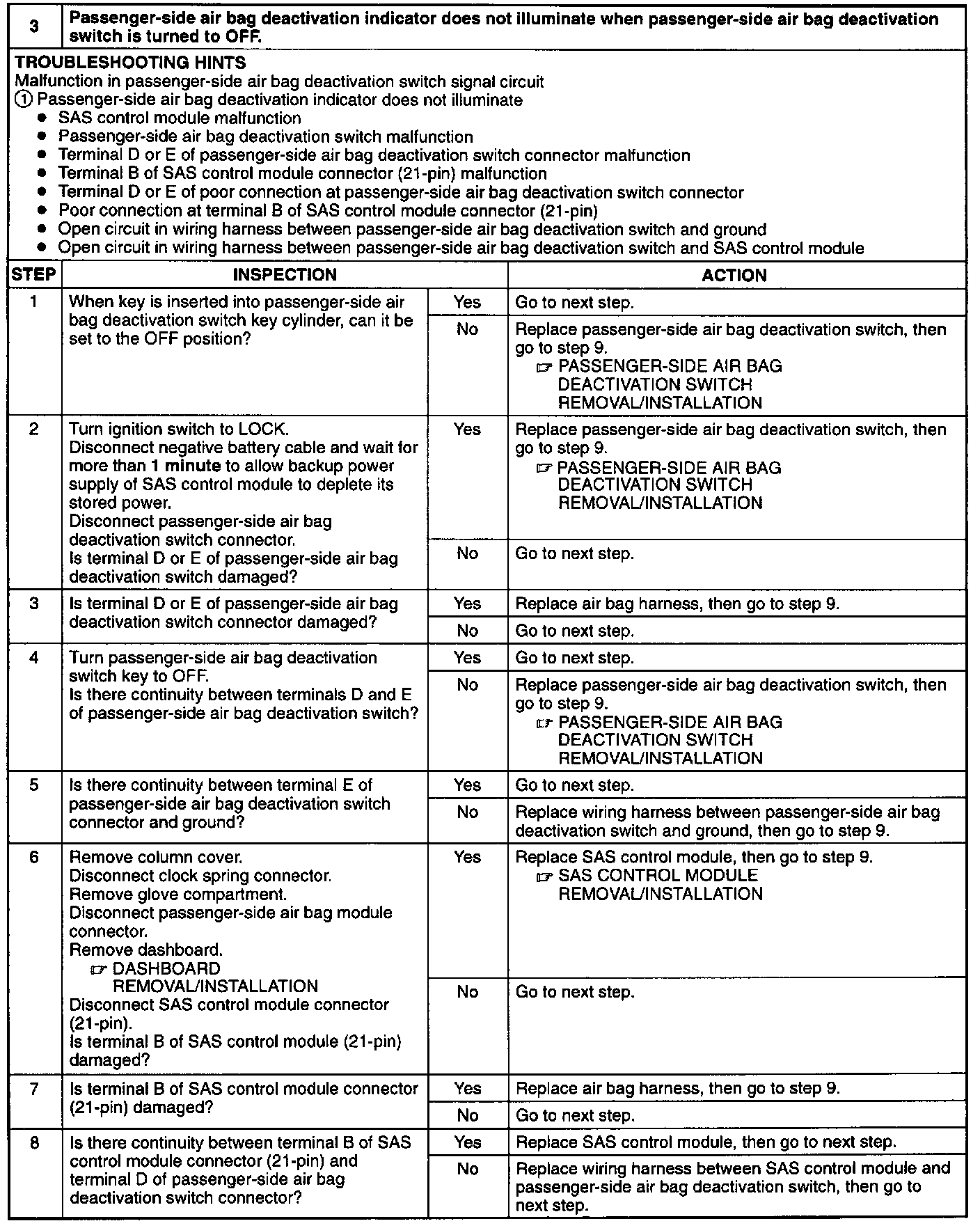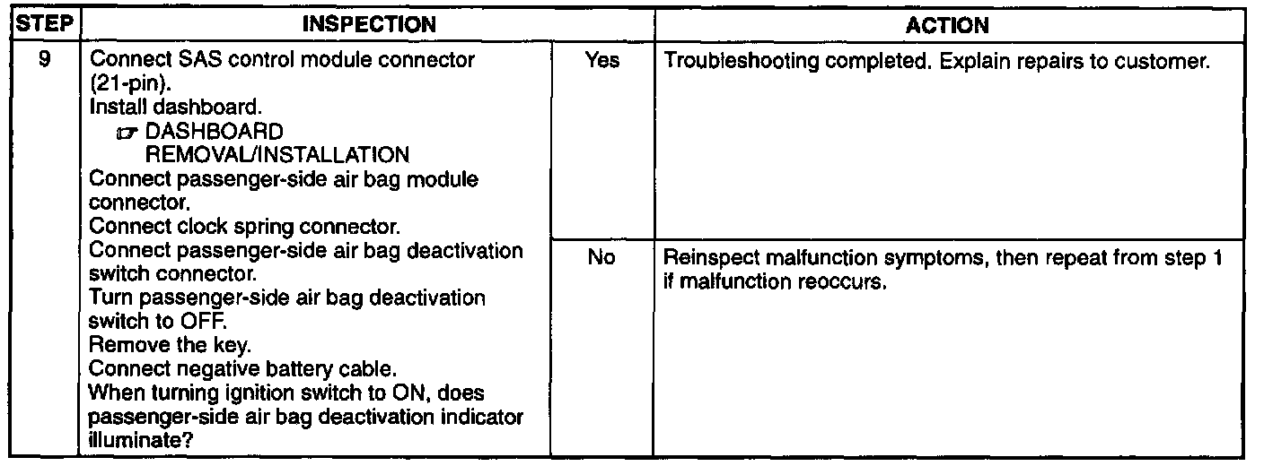 Passenger-side air bag deactivation indicator does not illuminate when passenger-side air bag deactivation switch is turned OFF.