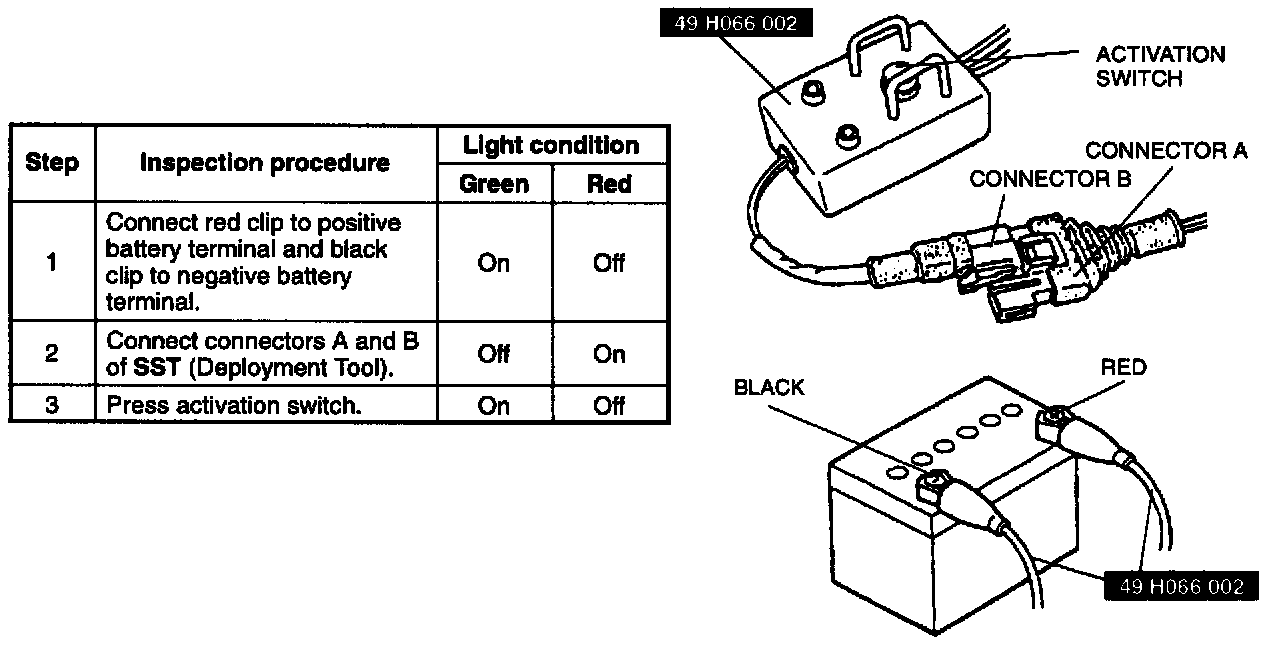 If not as specified, do not use the SST (Deployment tool) because it may cause the air bag module to unexpectedly deploy upon connection to the air bag module.