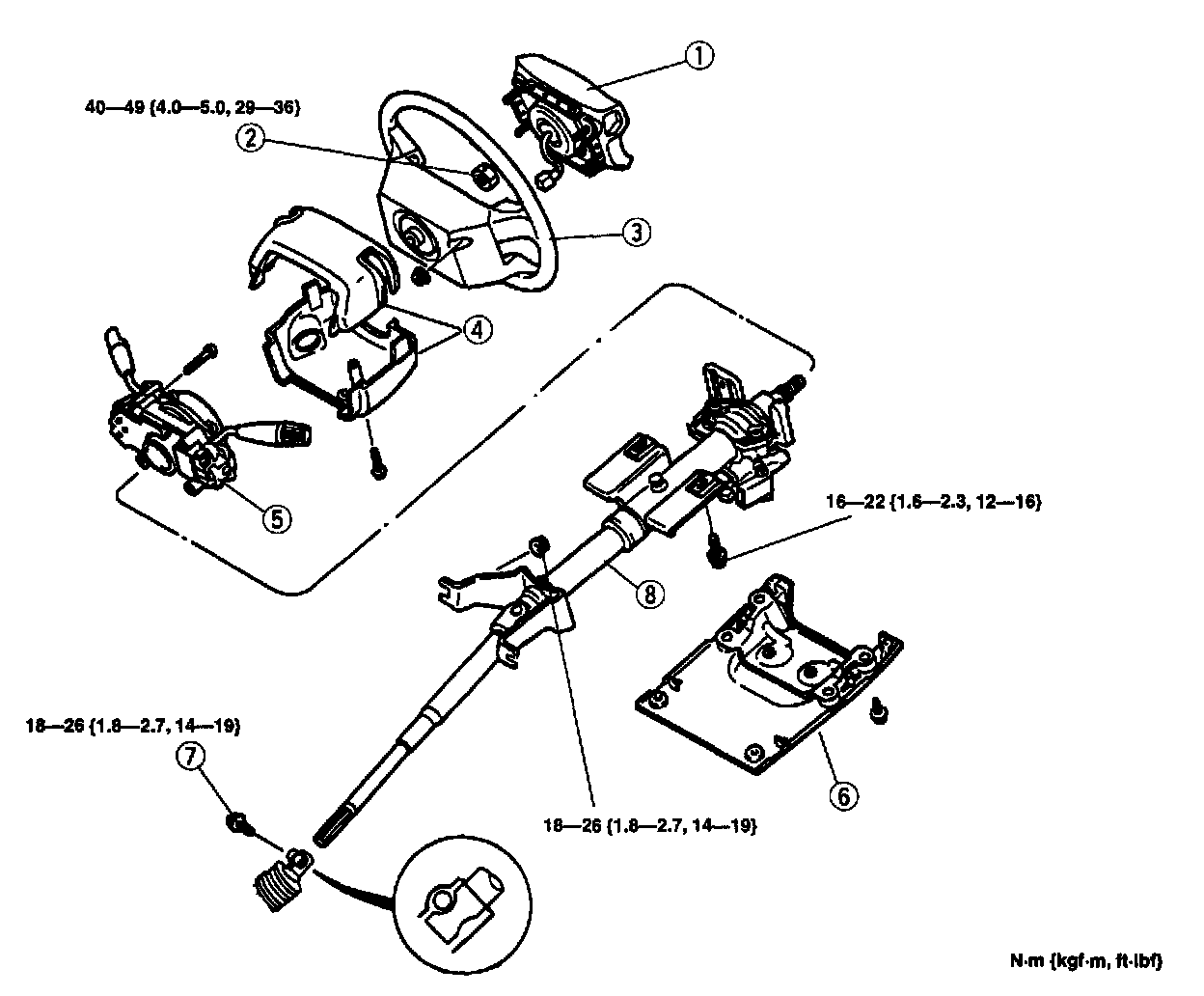 - Set the wheels in the straight-ahead position, remove the steering wheel by using a suitable puller.