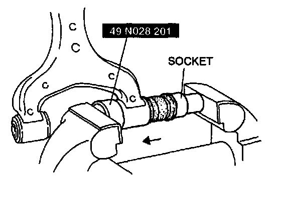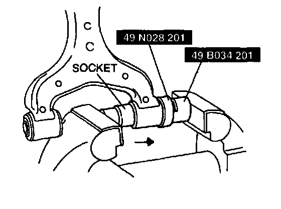 2. Press the bushing in by using the SST and a socket in the direction of the arrow.