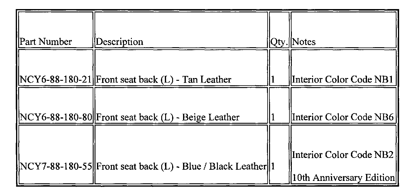 On some vehicles equipped with leather seats, the surface on the left side support of the driver's seat back may wear off. This wear may be caused by the shape of the seat frame being too sharp at the side support area causing excessive pressure to be applied to the support while the driver enters and exits the vehicle. To correct this concern, the frame of the driver's side front scat back will be modified starting with 2001 model year.