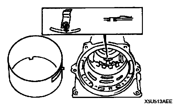 10. Using screwdriver with vinyl tape or the like wound at its tip, install retaining reaction plate ring. After installation, verify that ring is in groove securely.