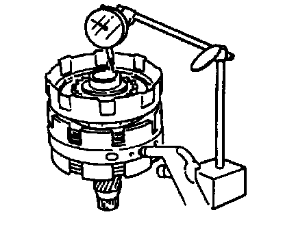 8. If measured value is less than standard range, it is possible that something is installed improperly or dust or fluid is on reverse brake disk, etc. If it exceeds standard range, replace reverse brake disc, reverse brake plate or reverse brake backing plate.