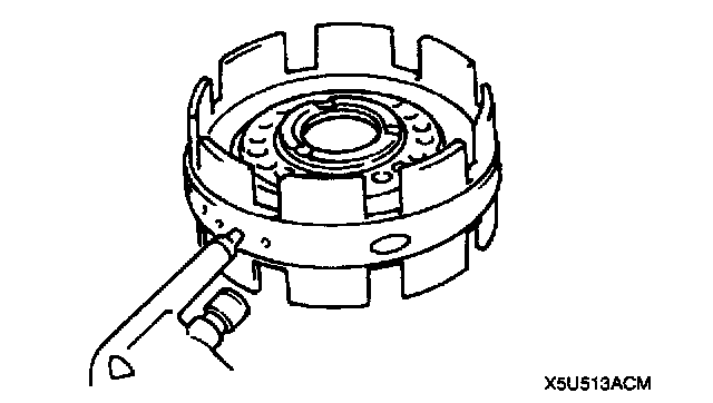 1. While holding the rear hub, verify that the sun gear shaft rotates smoothly when turned clockwise and locks when turned counterclockwise. If not as specified, replace the center support component.