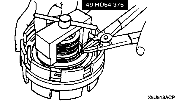 Caution: Depress the piston return spring only enough to Install the snap ring. Overpressing will damage the retainer component edges.