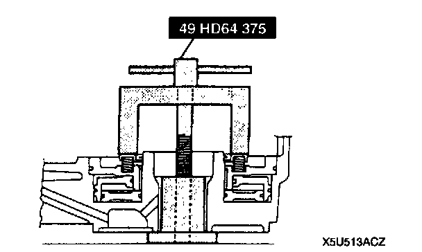 1. Remove the piston and sleeve from transmission case by applying compressed air through the fluid passage.