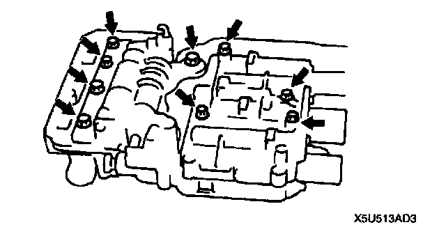 1. Remove the bolts from upper front valve body and upper rear valve body side.