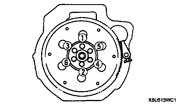 2. Tighten the drive plate mounting bolts gradually in the order shown.