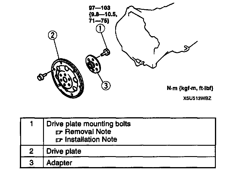 DRIVE PLATE REMOVAL/INSTALLATION1. Remove in the order indicated in the table.