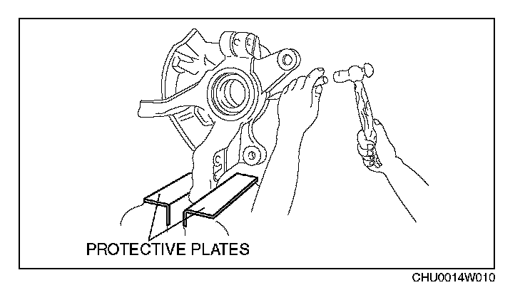 When using a vise, put protective plates in the jaws of the vise to prevent damage to parts.
