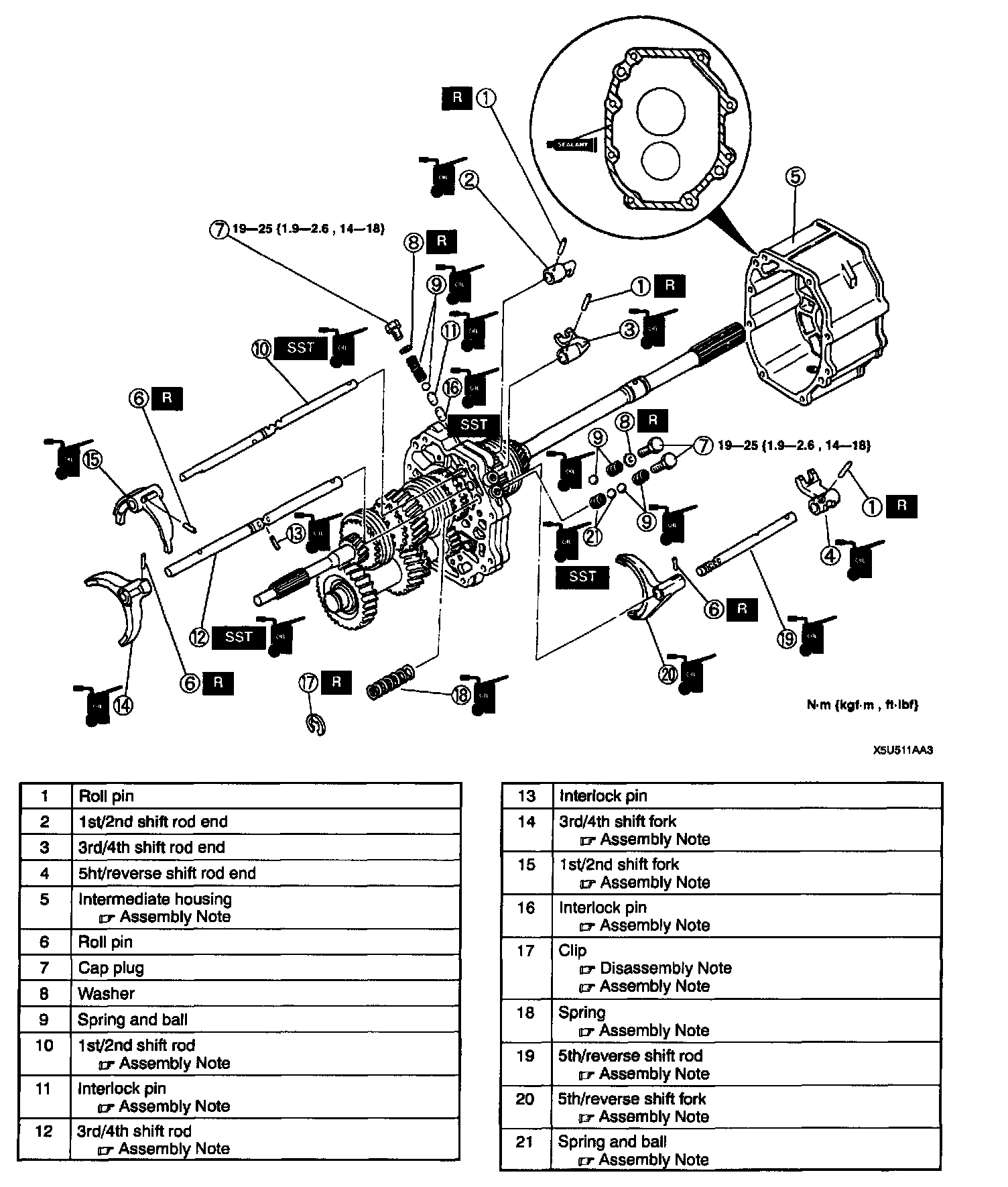 5th/Reverse Shift Fork And Rod Assembly Note