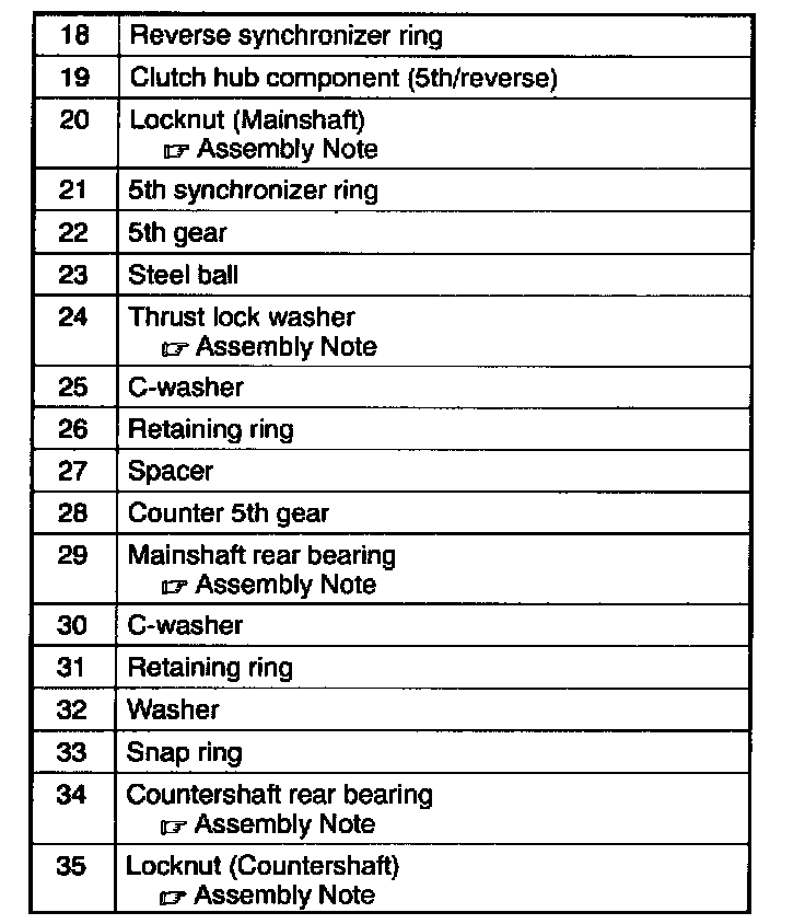 Mainshaft Gear Component And Countershaft Assembly Note