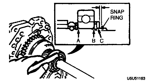 3. Install a new snap ring on the front of the mainshaft.