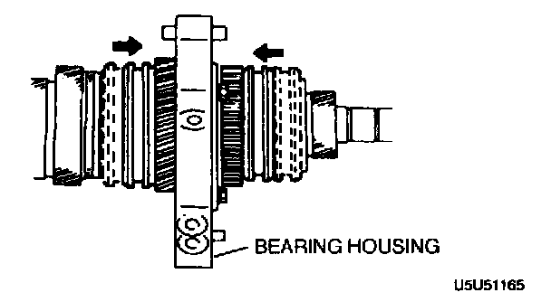 - Measure the clearance between the mainshaft front bearing and the bearing housing. If not within the specification, adjust the clearance by installing the correct adjustment shim(s).