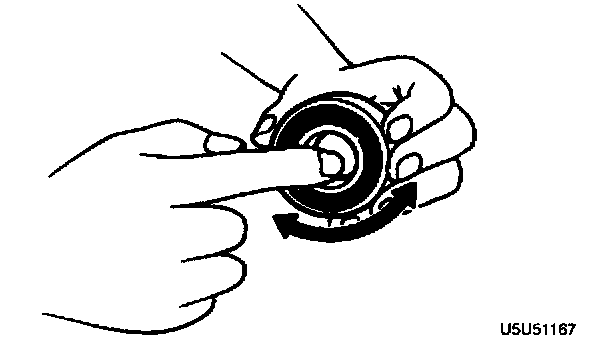 - Inspect for damage and rough rotation. Replace the bearing as necessary.