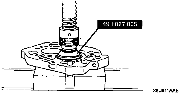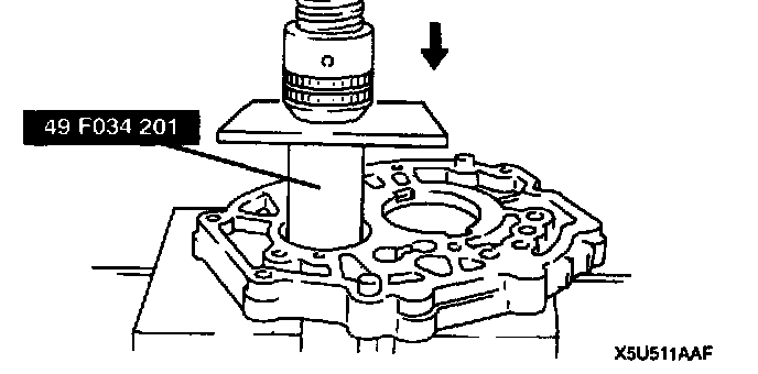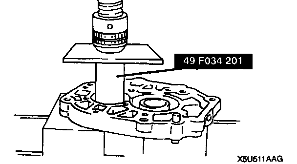 - Press the mainshaft front bearing into the bearing housing by using the SST.
