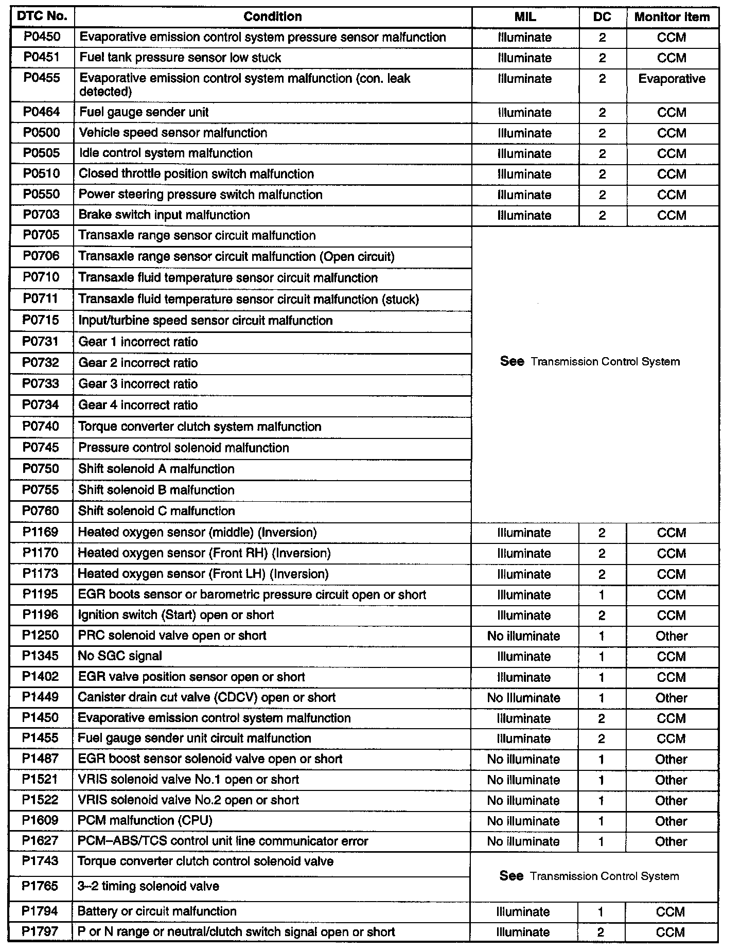 A L L Diagnostic Trouble Codes ( DTC )